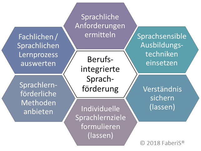 Der Begriff der Berufsintegrierten Sprachförderung wurde 2015 von FaberiS® eingeführt. Er steht für ein von FaberiS® entwickeltes Modell, das die Sprachbildung auf der Basis eines berufspädagogischen Ansatzes in Arbeit und Ausbildung einbindet.